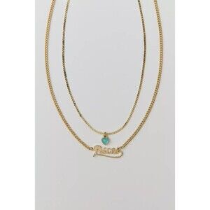 Urban Outfitters Nameplate Pisces Zodiac Sign Double Gold Necklace Set NWT $25