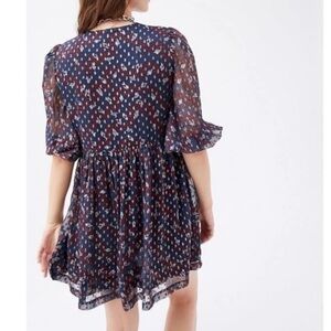 Urban Outfitters Navy Blue Metallic Puff Sleeve Mini Dress Babydoll Size XS in excellent condition,no flaws. This is so pretty!! Perfect party dress that is simple with a little bling
