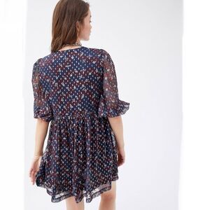 Urban Outfitters Navy Metallic Patterned Flowy Chiffon Mini Dress