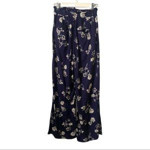 Urban Outfitters Navy/Off-White Floral Diane Paperbag Wide Leg Pants