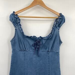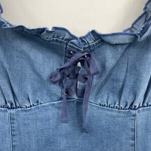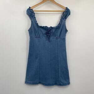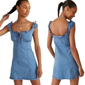 Urban Outfitters Nayda Denim Mini Dress Lace Up Sweetheart Neckline Blue Large