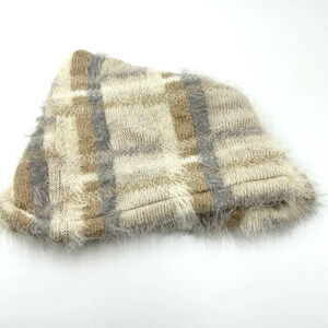 Urban Outfitters Neutral Eyelet Infinity Scarf in a tan beige white gray plaid print ft a super duper soft eyelet fabric, warm and cozy, heavy weight, twist loop style