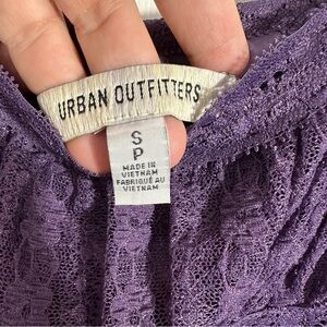 NEW with tags! Urban Outfitters Nikita Lace Hanky Hem midi dress in size Small. Color purple. Lace overlay. Cut in a slim-fit with a straight-across neckline and an empire waist. Complete with a pointed hanky hem with lettuce edging. Adjustable lingerie straps.
