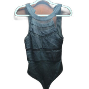 Turn heads with this sleek black one-piece swimsuit from Urban Outfitters. Designed with bold, structured paneling and mesh detailing, this swimsuit brings an edgy, fashion-forward twist to your swimwear collection. The high neckline and racerback cut create a flattering silhouette, while the form-fitting shape offers both style and support. Whether you're lounging poolside or making a splash, this statement piece is perfect for standing out in all the right ways.