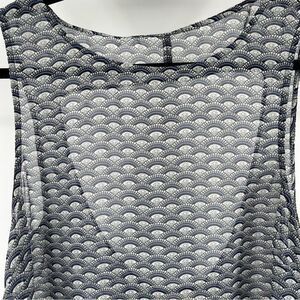 Urban Outfitters Yaya Nom De Plume Blue Gray Scallop Print Sleeveless Sheer Swing Relaxed Pullover Back Cutout Top Large