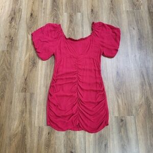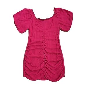 Urban Outfitters Off the Shoulder Ruched Mini Dress puff sleeve size 10 pink