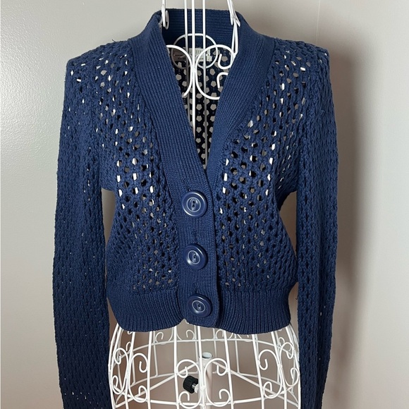 Urban Outfitters Open Knit Cropped Jumbo Button Navy Blue Sweater Cardigan Sz S