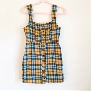 Urban Outfitters Orange Blue Plaid Button front Jumper dress