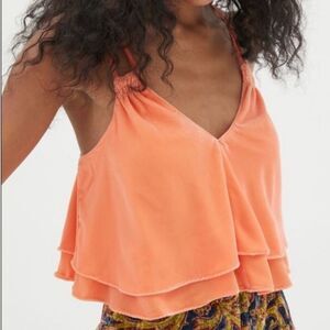 Urban Outfitters Orange Velvet Ruby Strappy Tiered Tank Top