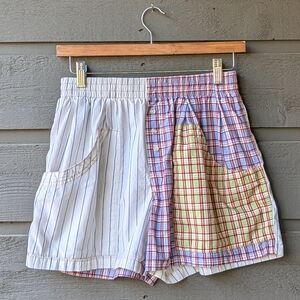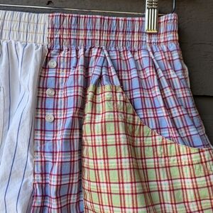 Excellent preowned condition Out from Under Bailey Boxer Shorts from Urban Outfitters. Mixed patchwork plaid color way. A pair of menswear styled lounge shorts by Out From Under. Relaxed fit. High-rise. Topped with an elastic waistband and side pockets. Button detail. Large patch pockets. UO exclusive. Size/ Brand tag removed. No flaws.