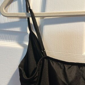 Gently worn Urban Outfitters Out From Under Black Slinky Draped Cowl Neck Bodysuit women’s size large. Lightweight slinky black stretch knit material, poly/spandex blend, adjustable straps, draped cowl neckline, snaps in crotch, thong back. Offers accepted!