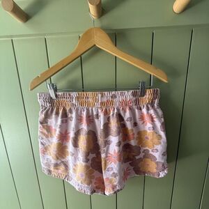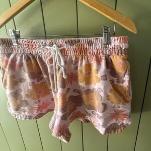 The Ellie Sweatshorts by Out From Under for Urban Outfitters in Floral Multi. Elasticized waist with drawstring. Relaxed fit with a mid rise and drawstring waist. Preowned with some fading.