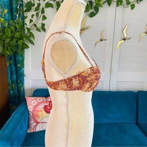 Out From Under Ivy Printed Underwire Bikini Top in the color Neutral Motif, a cream, yellow, orange, burnt red and brown colored snake print throughout!