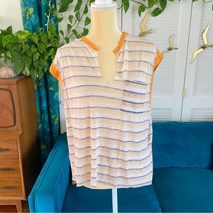 Urban Outfitters Out From Under Melly Muscle Pocket Top Tee in the color Assorted, a creamy oatmeal color with heathered stripes in lavender pink, grayish sky blue, pastel orange, and navy.