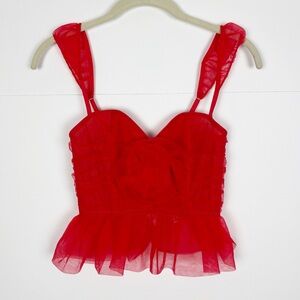 Urban Outfitters Out From Under Rosabelle Tulle Rose Corset Red Top Size Small