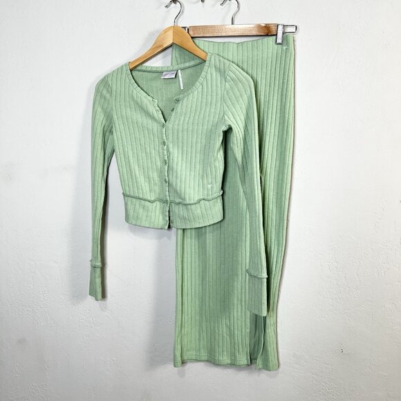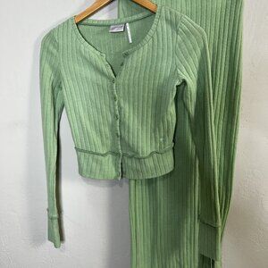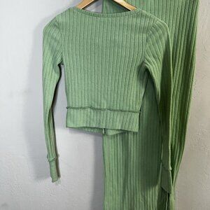 Urban Outfitters Out From Under Suki Ribbed Cardigan Maxi Skirt Set Green Sz XS
