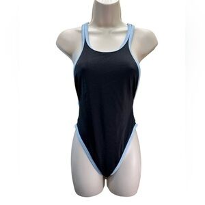 UO Out From Under Westport Sporty bikini spedo Swimsuit in shinny black and blue lining, has no padding. Open back with cross cross straps, it’s a cheeky style. In great condition