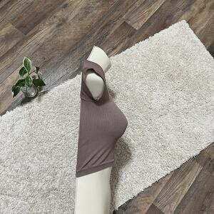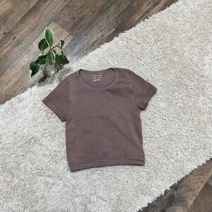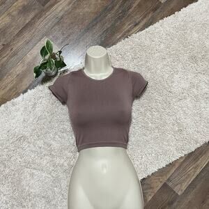 Brownish purple, ribbed, short sleeve, cropped, seamless