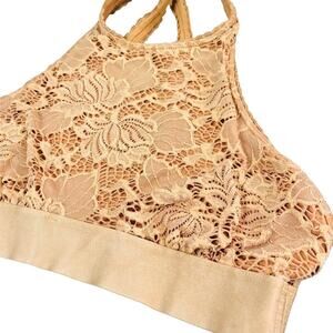 Urban Outfitters Out From Under neutral lace cross-back high neck bralette Large