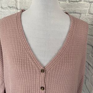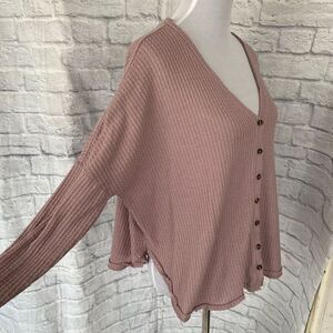 Urban Outfitters Out from Under women XS loose fit waffle texture v-cut front button batwing Longsleeve top
