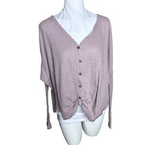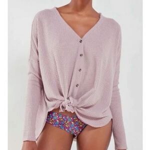 Urban Outfitters UP Out from Under Jojo waffle knit top . Knot at waist. Size small. Dusty dark lavender mauve. button down. v neck.