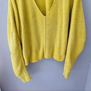 Urban Outfitters Oversized V-Neck Knit Pullover Sweater Yellow Sz Small
