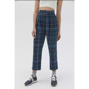 Urban Outfitters Paige Pleated Cropped Straight Leg Trouser- Small- Multicolored