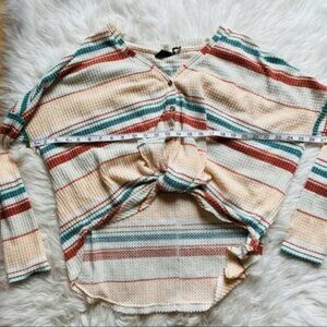 Urban Outfitters | Pastel Jojo Striped Henley Tie Front Thermal | Size Small