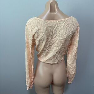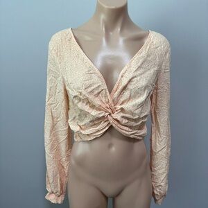 Urban Outfitters Peach Micro Floral Print Twist Front Crop Top Shirt Small Pink