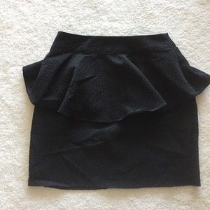 This peplum mini skirt by Silence and Noise (from Urban Outfitters) is in classic black, and the peplum hides the stomach area lol.