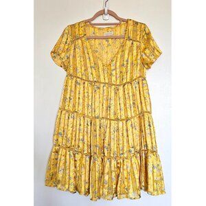Urban Outfitters Picnic Tiered Frock Short Sleeve Dress XS Glowy Golden Yellow