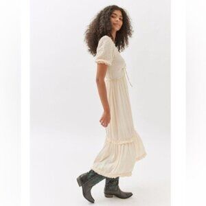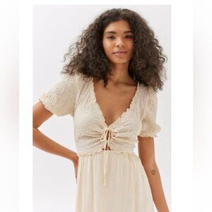 Urban Outfitters Picnic Time Midi Dress New Medium Creme Boho Minimalist Texture