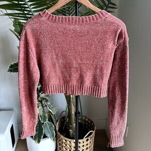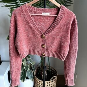 Urban Outfitters Pink Chenille Cropped Cardigan Sweater S | Cozy Soft Y2K