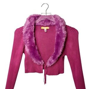 Urban Outfitters Pink Cropped 90s Ribbed Women’s Cardigan Fuzzy Collar Sz M