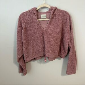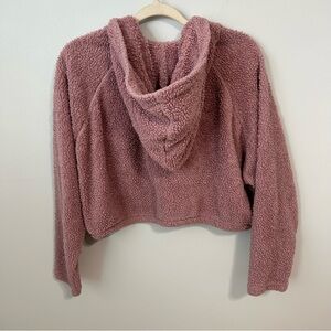 Urban Outfitters Pink Fuzzy Cropped Fleece V-Neck Hoodie Women’s Size Small