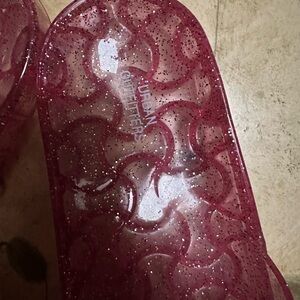 Cute Urban Outfitters slip-on slides in a translucent pink with allover glitter. Lightweight, waterproof, and easy to clean. Perfect for casual wear, pool days, or beach trips. Gently used and in great condition.