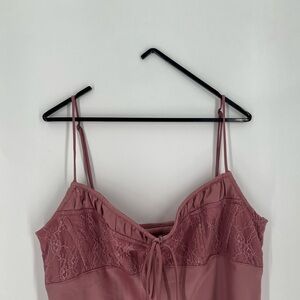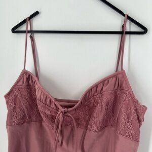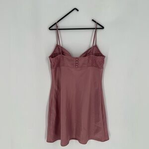 Chic mini dress with delicate lace detailing. Spaghetti straps. Perfect for a night out.