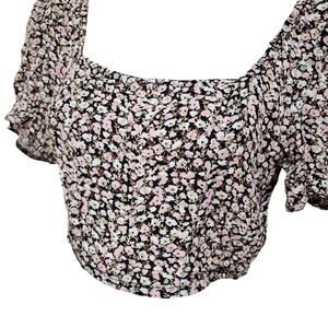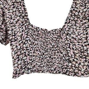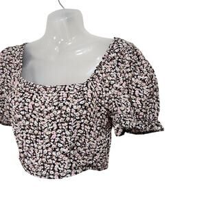 Urban Outfitters Pink White Micro Floral Patterned Puff Sleeve Top Size Small
