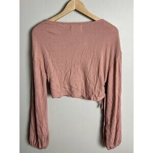 Urban Outfitters Pink Wrap Crop Top Long Sleeve Ribbed Knit Size Large Women’s