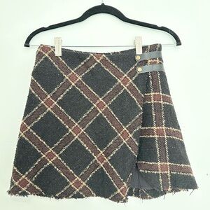 Urban Outfitters Plaid Black Motif Wrap Skirt Huntley Wool Wrap SP