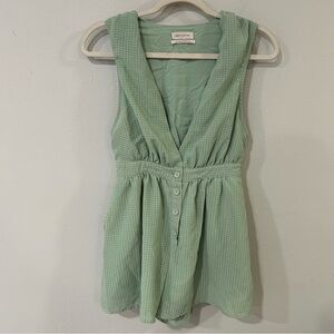 Urban Outfitters Plaid Chiffon Plunging Button Down Green Romper Women’s Small