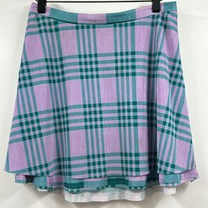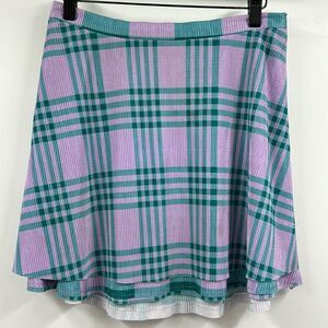 Urban Outfitters Plaid Flare Mini Skirt size medium. Double layers of tiered fabric, Gently used condition with no visible flaws. Side zipper closure. 100% polyester, machine wash.