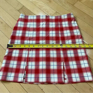 Urban Outfitters Plaid Mini Skirt Womens Small S Red Preppy Retro Stretch Slits
