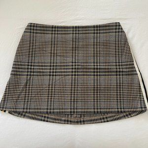Urban Outfitters Plaid Side Stripe Racing Mini Skirt. Bought size L, but altered to fit a M. Plaid fabric cut with a mid-to-high-rise in an A-line silhouette. Features sporty side stripe detailing, pockets at the hips and a zipper closure at the back. Gently pre owned condition, no flaws.