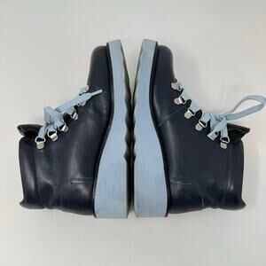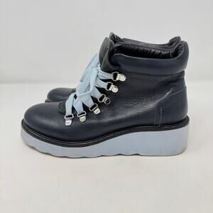 Urban Outfitters Platform Boots 6 Blue Leather Utility Combat Casual Wedge