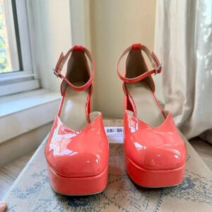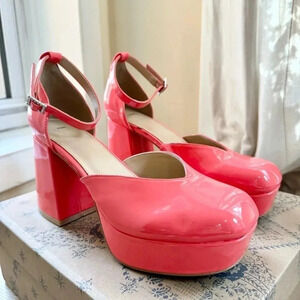 Urban Outfitters UO Platform Heels Patent Neon Barbie Pink Block Heel Ankle Strap