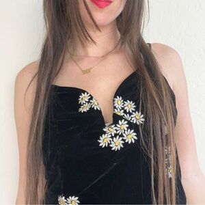 Urban Outfitters Plunging V Velvet Daisy Dress