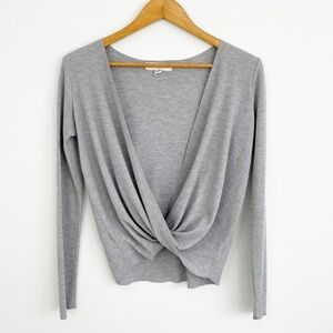 Urban Outfitters Project Social Gray Waffle Faux Wrap Long Sleeve Top Size Small