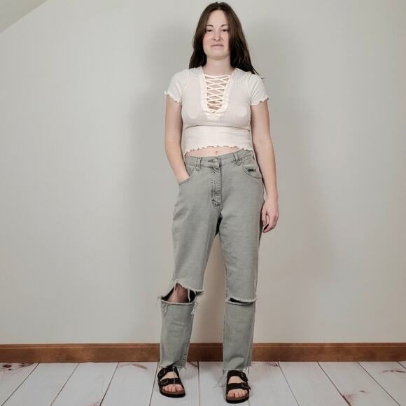 Urban Outfitters Project Social T Lace Up Baby Tee Cream XS
