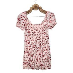 Urban Outfitters Puff Sleeve Cotton Mini Dress Fan Floral Pink Red Large